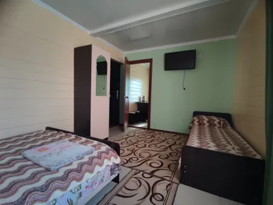 В доме 2 этажа. Первый этаж сдается под ключ для семьи из 5−8 человек. На этаже 3 комнаты кухня и ванная комната. У дома имеется терраса где можно отдыхать за столиком. На втором этаже два отдельных номера, которые подойдут и для большой семьи и как отдельные номера.